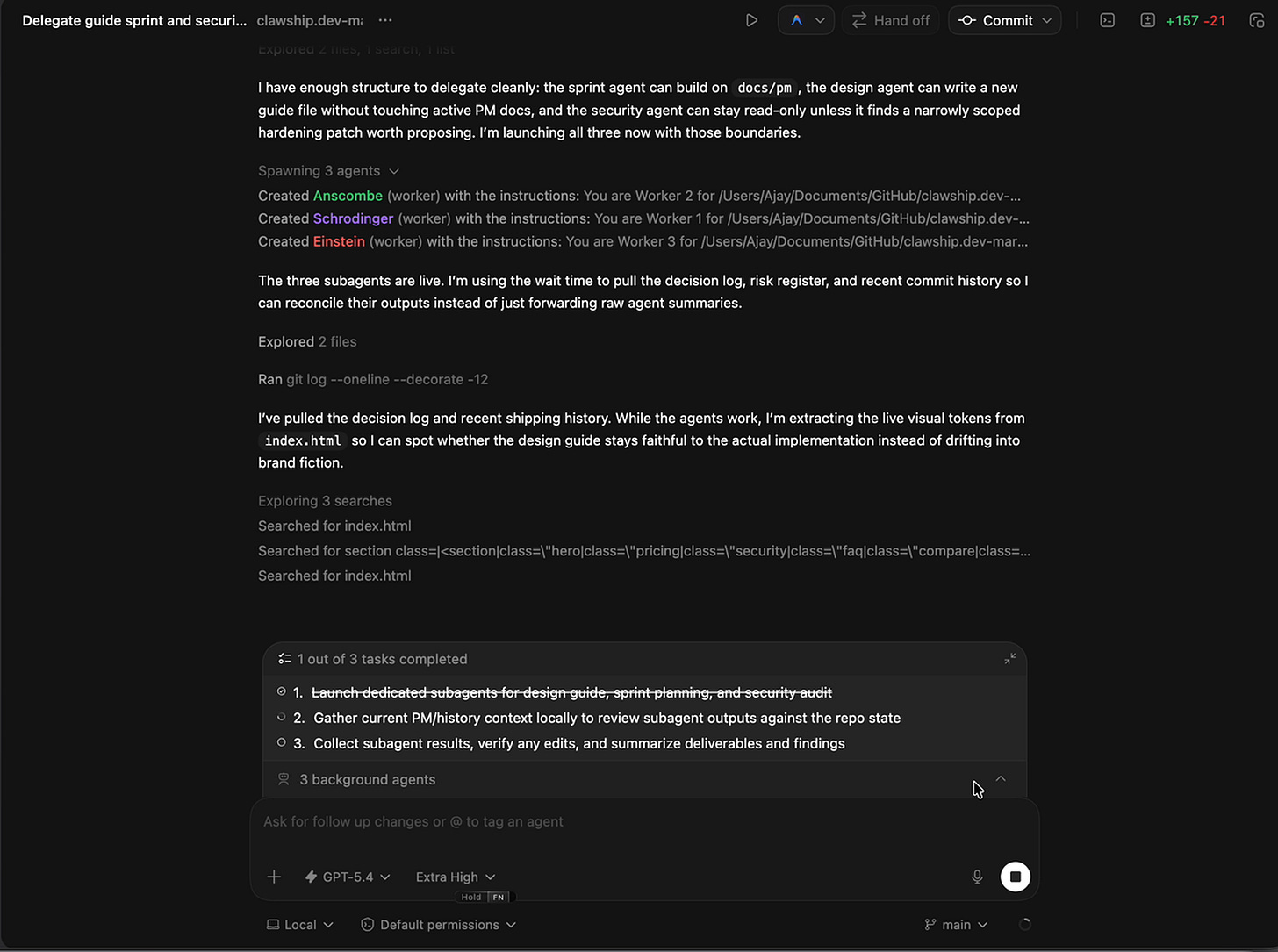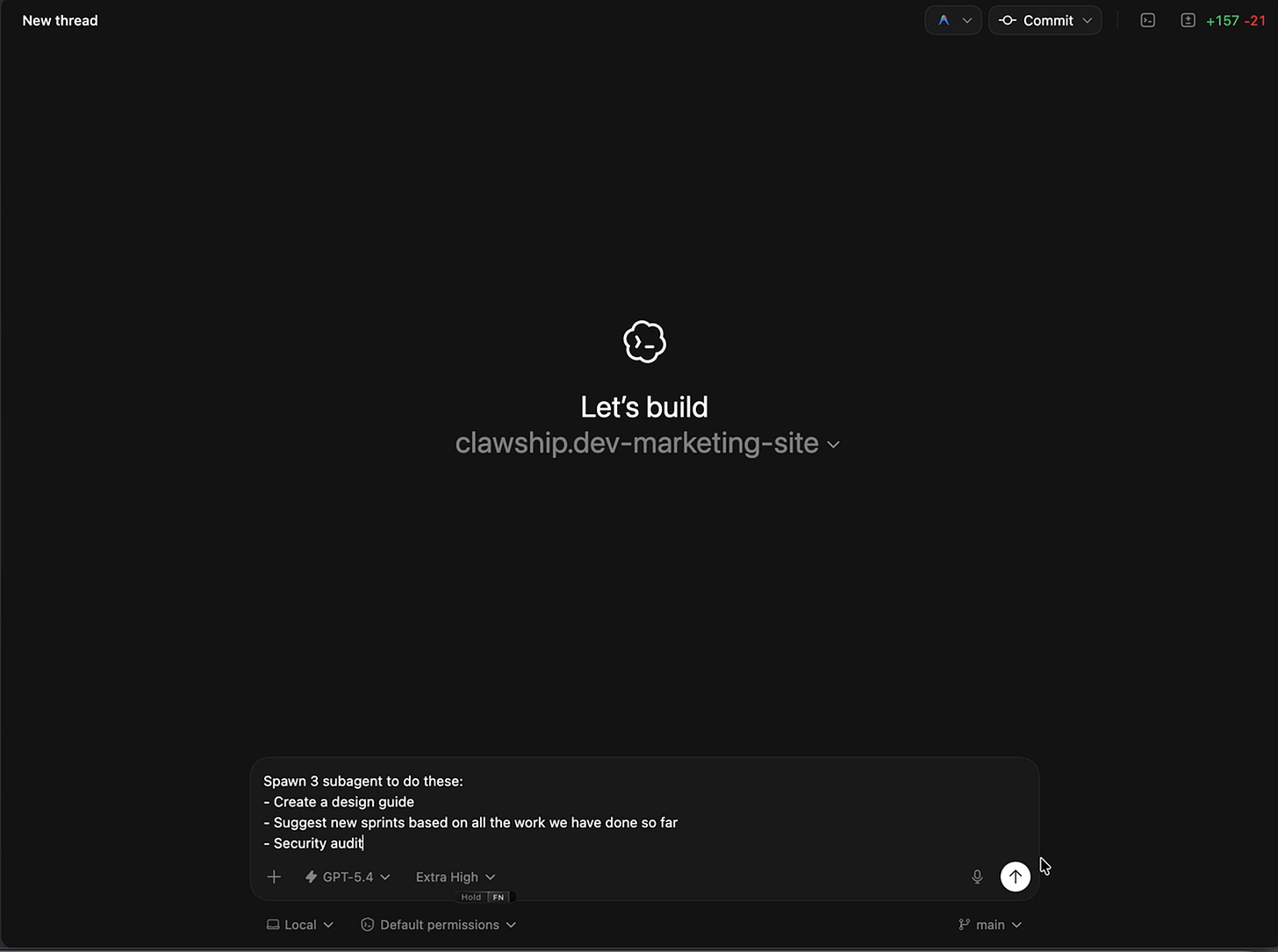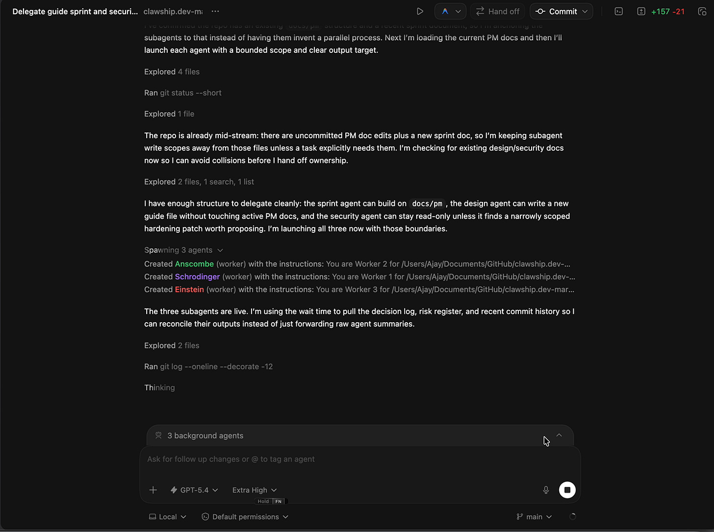 And critically — you steer individual agents as work unfolds. This isn’t fire-and-forget automation. You’re in the loop. You can redirect a running subagent, stop it, or close completed threads.